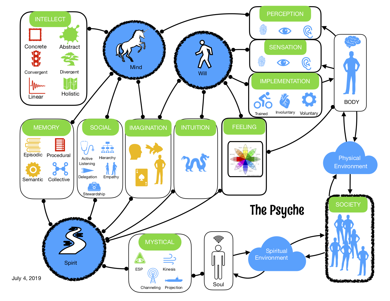 But there are no connections between the spiritual and the sensational parts of the Psyche. Nor between the spiritual and implementational parts of the Psyche. And what the heck is Projection? I either need to add a lot more links, write off these phenomena a pure hokum...